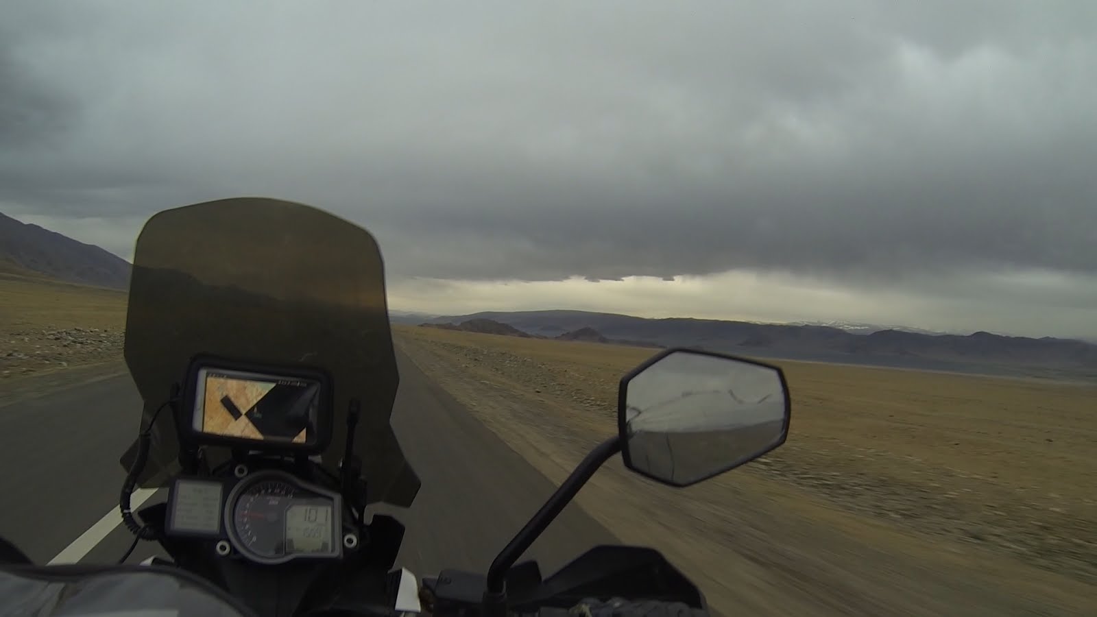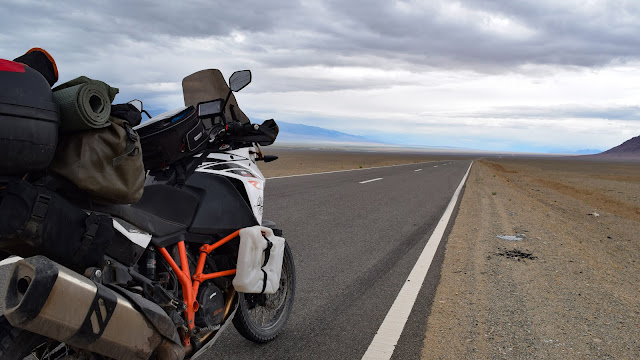 Через 6 с половиной часов я в Баянхонгоре. Заправка. И впервые я пробую что-то перекусить в местном кафе, но проклятый языковой барьер. Мы не очень то понимаем друг друга и мне приходится есть не совсем то чего бы хотелось. Мясо я принципиально не заказываю, начитался про чуму знаете ли, но и то, что у нас звучит как чай здесь выглядит как молоко с солью. Съедаю яичницу с куском хлеба. Выезжаю из города и удивляюсь. Дорога снова перерыта, а все обещали, что дальше будет только асфальт. Штурмую насыпь и заваливаю мотоцикл на бок. Минус второе зеркало. Бак был полный и при падении пролился бензин из сепаратора, и видимо бензин заполнил его он перестал выполнять свою функцию, потому что потом расход стал показывать аномально маленьким 3.2 литра. Так я проехал около 100 км, но ничего не изменилось. Я решил проверить наличие бензина визуально и открыл лючок бензобака, от туда вдруг вспрыснул бензин. Я и раньше слышал что бензин иногда закипает в баке от перегрева, в этот день тоже было жарко, видимо высокое давление в баке и закупоренные каналы для отвода паров сыграли эту злую шутку. Только после того, как я оставил духам монгольских дорог второе зеркало, асфальт перестал исчезать из под колёс.