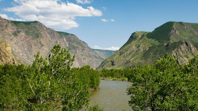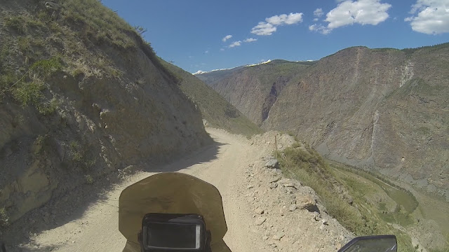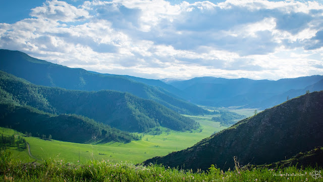 Продолжаю двигаться на юг. Этот долгий день давно перевалил за середину, а я только обедаю в кафе, заправляюсь и покупаю продукты на ужин. Выезжая с заправки встречаю байкеров. Делимся маршрутами и планами. Они едут с перевала Кату-Ярык, не доехав до него каких-то 20 км. Причиной стал непроходимый каменистый подъём покрытый слоем песка по консистенции напоминающий пыль. Завалив пару раз мотоцикл ребята развернулись и оставили эту затею. Я пока не сильно уверен в своих навыках на бездорожье, и потому этот рассказ меня тревожит. А ведь завтра я намеревался потратить день на то чтобы попасть на этот перевал. Дорога на него начинается в селе Акташ, там необходимо свернуть с трассы на лево, преодолеть почти 100 км грунтовки и оказаться у отвесной стены перевала. Спуститься вниз и подняться наверх способны только полноприводные автомобили или мотоциклы на зубастой резине, остальных смельчаков местные вытаскивают на тросу бульдозером или буханкой. У основания перевала протекает река Чулышман и через 80 км она впадает в Телецкое озеро - ещё одно чудо Алтая. По слухам в долине река Чулышман разлилась из-за прошедших недавно дождей, несколько человек застряли на южной стороне Телецкого озера и ждут когда уровень воды спадёт чтобы вернуться. Я не ставлю себе цель штурмовать брод. Мне вполне хватило бы доехать до перевала, а там решить по ситуации.
