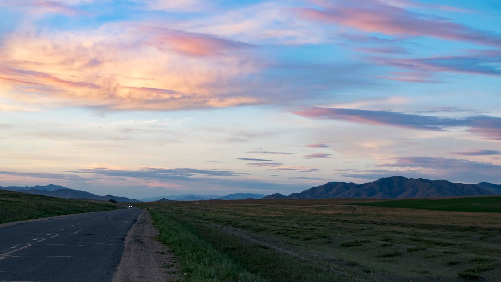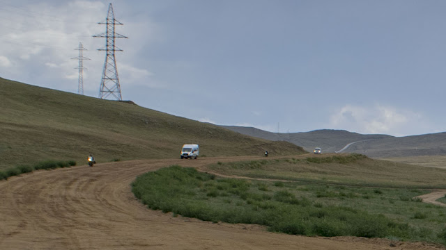 Следующий крупный город, да и вообще хоть какой-то населённый пункт Ховд. Перед ним уже кладут асфальт, но дорога не достроена и все въезды не неё перекрыты. В тех местах где гравийка пересекает строящуюся дорогу по обе стороны сделаны земляные насыпи перекрывающие въезд на асфальт.