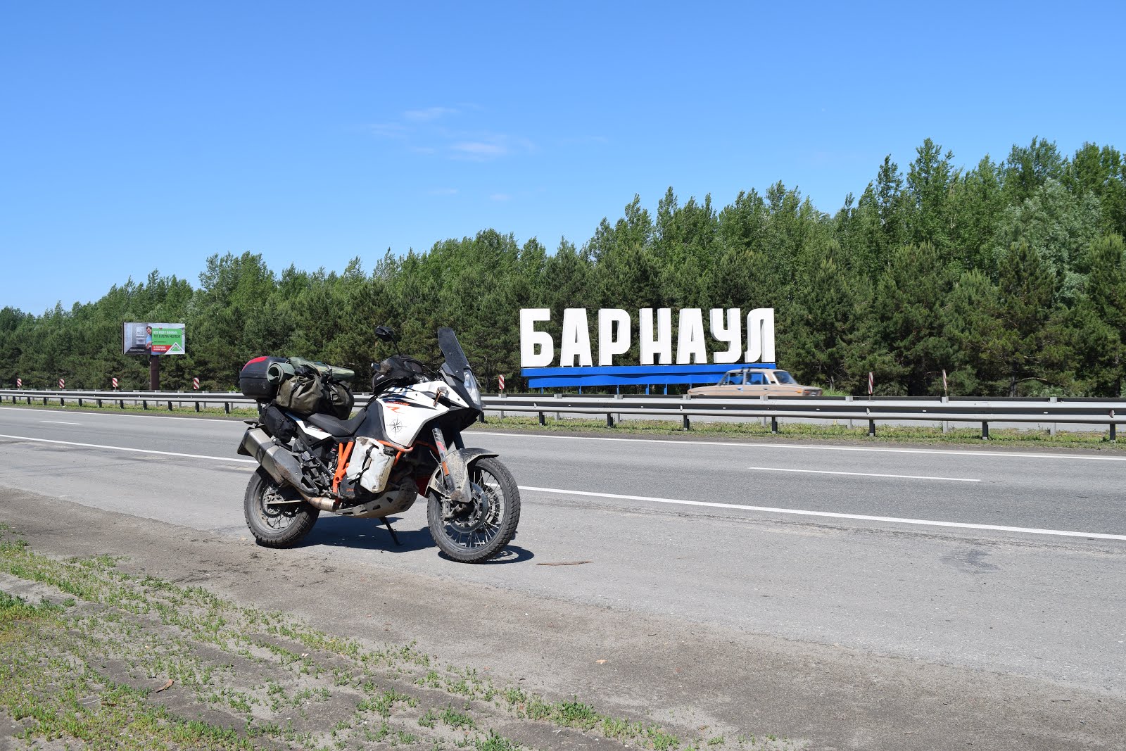 Утро пасмурное, но сухое. Собираюсь быстро, это самое худшее место из всех, где я когда-либо ночевал с палаткой. Задерживаться здесь нет желания. Доезжаю до заправки. Завтракаю вафельными трубочкам с варёной сгущёнкой, берёшь 3 и четвёртую в подарок. Вот она то в меня уже не лезет. Чем ближе к Барнаулу, тем шире и лучше дороги. В городе не планирую задерживаться.