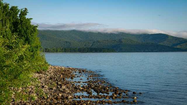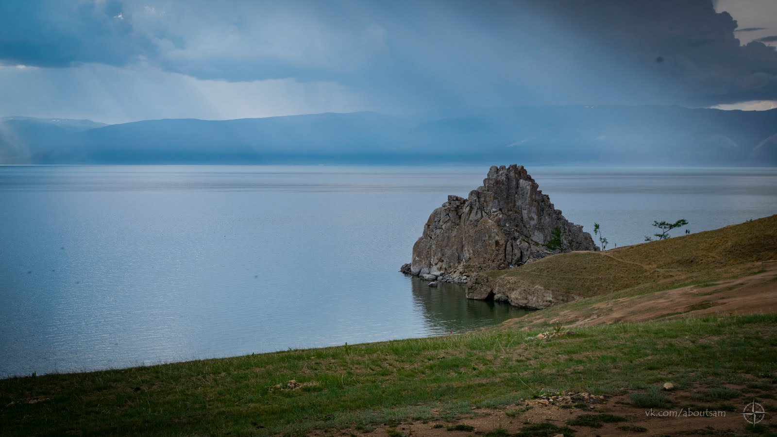 Погода очень переменчива. В Улан-Удэ жара за 30, а когда подъезжаю к Байкалу уже около 16 и поливает дождь. Я долго ждал появления этого озера, я видел по карте что еду вдоль берега и до него рукой подать, но нас разделяют деревья и железная дорога. Когда оно впервые показывается между деревьев дыхание замирает от восхищения. Я таки доехал!!!