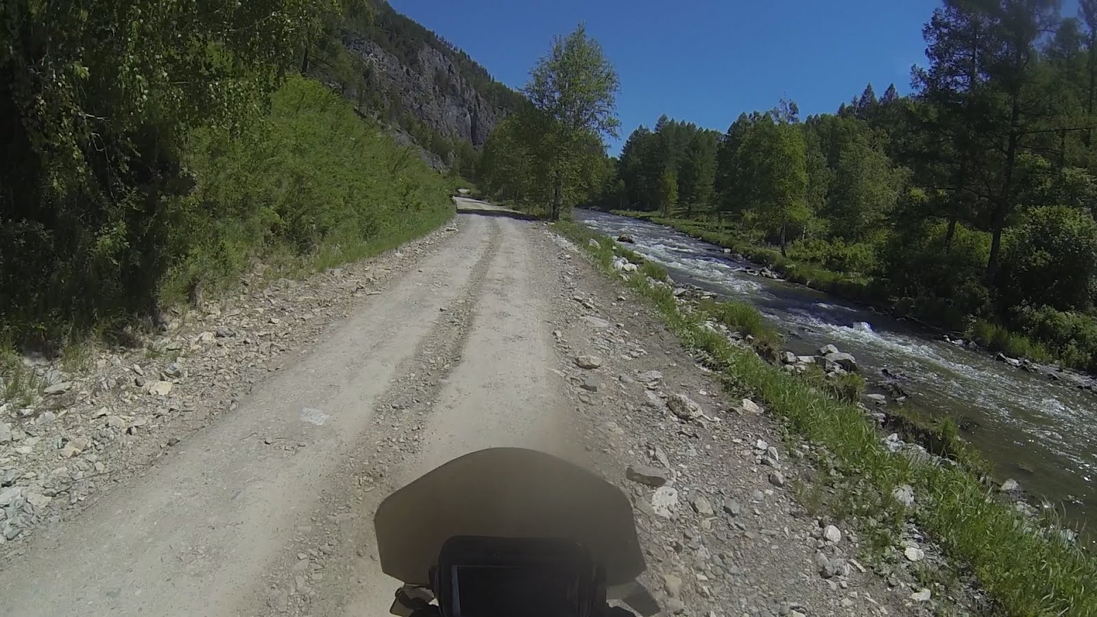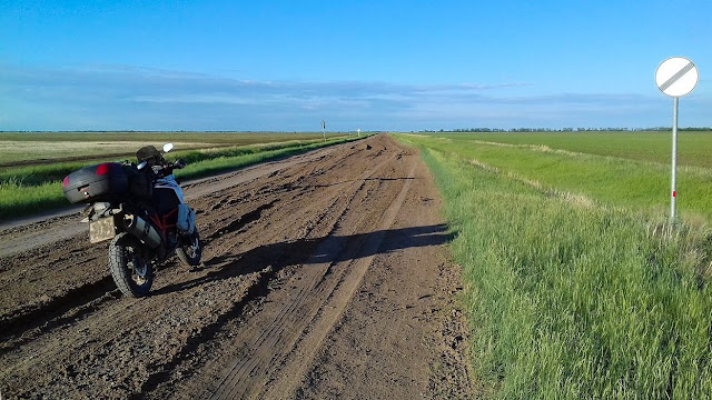 Доезжаю до Павлодара, там нахожу всем известный магазин спортивного снаряжения и покупаю самую дешёвую палатку. После Павлодара заправляю коня на АЗС и себя в кафе. Границу прохожу часа за 2 и то из-за перерыва на нашей стороне. Тут мотоциклы пропускают без очереди, приятно. Появляется интернет, отписываю всем что жив здоров, это ж я целых 2 дня был без связи!! На нашей стороне населённый пункт Кулунда. В навигаторе забит Барнаул и яндекс говорит в Кулунде езжай направо, а дорожный указатель, налево. Решаю довериться навигатору и через пару км асфальт прощается со мной. Начинается весёлая грунтовочка, одно радует: она сухая и тут разрешается ни в чём себе не отказывать.