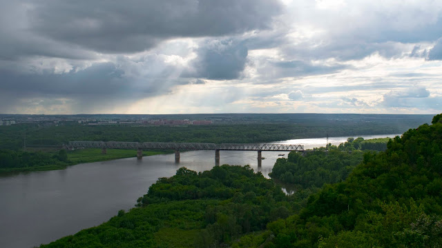Хочется уже поскорей проехать эти знакомые места и ощутить дух странствия. При въезде во Владимир стоит макдональдс, и каждый раз проезжая здесь уже по традиции я останавливаюсь тут перекусить и выпить стаканчик кофе, переводя дух после первых 200 километров. В первый день я хотел добраться до Казани, раньше никогда здесь не был. Каждый следующий день я планировал проезжать чуть меньше предыдущего, устраивать днёвки раз в 5..6 дней или не устраивать их если посчитаю не нужным. Перед Казанью под дождём любуюсь видом на Волгу. В Казани ажиотаж вокруг чемпионата мира по футболу. Город чист и украшен, кругом толпы туристов валят из своих автобусов. Никогда не понимал такого отдыха на поводке.