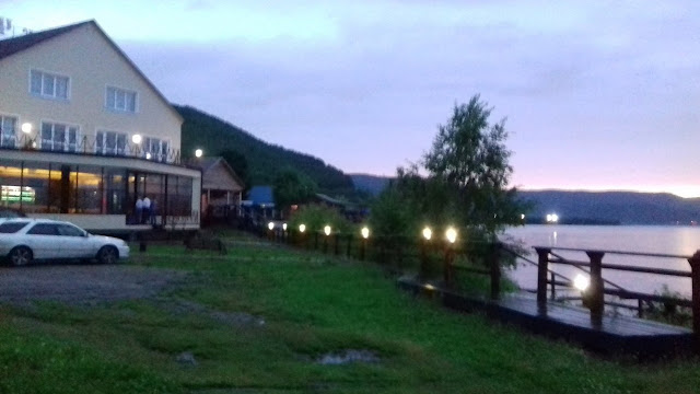 В Слюдянке я уже вечером и как раз в это время дождевая туча отступает приоткрывая на горизонте золотые лучи заходящего солнца.