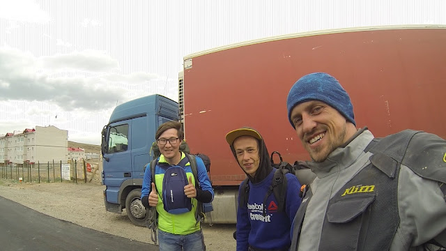 Вот вредные казахи на набитой делике, которые не пропустили меня к французам чтобы заехать на КПП и дальше двигаться вместе.