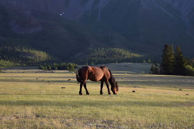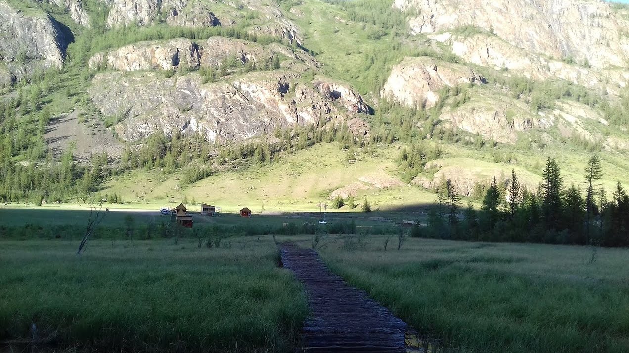 Завтра предстоит Монголия, а значит прощай цивилизация. Решаю немного побаловать себя и снимаю домик на ночь. Завтра дожди и если они придут ночью, то лучше встретить их в нормальном жилище. Перед посёлком Чаган-Узун есть кемпинг. Крохотные домики, свет и розетки от аккумулятора через преобразователь, все удобства на улице зато всего за 600 рублей. В хозяйстве несколько коней, верблюд и як. Мальчуган лет десяти заселяет меня в домик пока взрослые занимаются возведением шатра для будущего кафе. Хочу немного прогуляться по полю и интересуюсь наличием клещей. Малой улыбается и говорит что здесь их уже несколько лет никто не видел, а пугающие таблички лишь для того, чтобы туристы не съезжали с дорог и не загаживали территорию.
