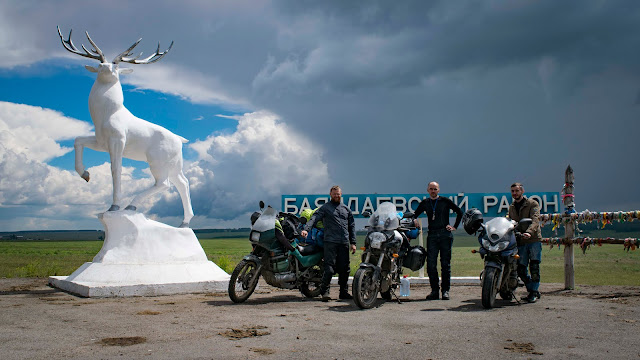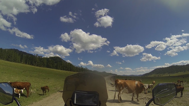 Хочу здесь ещё раз выразить свою благодарность Игорю за гостеприимство и полезные советы. Так как я еду один, а впереди мне предстоит пересечь Монголию, то я как губка впитывал любую информацию об этой стране. Меня пугало всё: бездорожье, антисанитария, отсутствие связи, навигации, бензина, цивилизации и своевременной помощи. Но вместе с тем я не мог не попробовать. Уж очень меня тянуло в эти бескрайние степи. И я никогда ещё не был к ним так близок как сейчас и вряд ли скоро буду. Так что отказываться от этого приключения было глупо. Я не вёз с собой запасную резину, поэтому сильно переживал из-за возможных проколов. А ещё есть языковой барьер, и не знание законов и обычаев. В общем чтобы понять мои опасения представьте себе что в одиночку едите в Мордор. Игорь своим уверенным голосом озвучил мне срок в 4 дня на пересечение страны, и максимум 400 км грунтовых дорог, но предостерёг только от одного: превышения скорости. На скорости выше 40км\ч ты не успеваешь заметить острый скальник, способный пропороть резину как нож, а ещё рельеф может таить опасность и за, казалось бы невинным холмиком, может скрываться глубокий овраг. Превышать скорость в Алтае значит рисковать наткнуться за поворотом на стоящую посреди дороги корову, которая не обратит на тебя никакого внимания. Ещё он посоветовал мне не ехать по Чуйскому тракту а въезжать в горы через Солонешное. Так я смогу избежать многолюдных туристических зон и увидеть настоящий Алтай, каким его видят коренные жители. Итак я устроил себе пол дня передышки, нормально отдохнул, выспался, привёл себя и свою технику в порядок. Позже приехали трое из Хабаровска Саня, Таня и Гровер, Бармалей из Нижне-вартовска и Данила из Владивостока. О своих приключениях надеюсь они напишут сами.