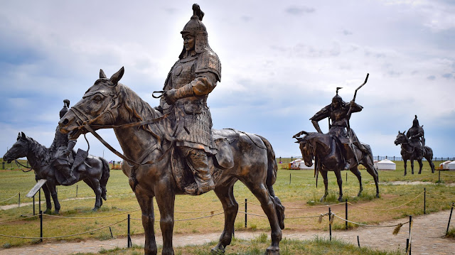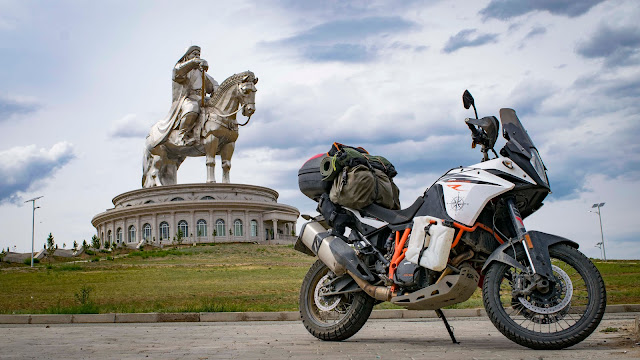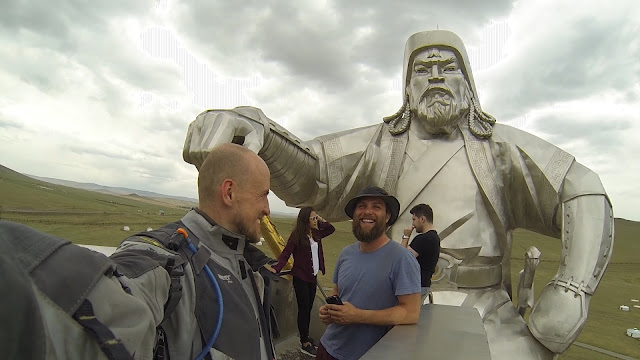 Завтрак и погнали. 200км до предместья Улан-Батора пролетели на одном дыхании. Город встречает меня дымкой, это пыль, выхлопные газы и заводы. Многие жители ходят в медицинских масках. Пробки здесь не хуже чем у нас. Не хватает зелени, скверов и парков. Кажется что тут проживает бОльшая половина населения страны. Местные жители на иностранцев смотрят как бабки на африканцев в Советском союзе. Зато и мы без проблем вычисляем друг друга. С лёгкостью завязываем разговор как старые знакомые. Делимся историями и полезной информацией. Пару часов я катаюсь в поисках сувениров, но честно говоря, город мне не интересен. Тут очень тесно, многолюдно, душно и нервная обстановка. Я еду смотреть крупнейшую статую Чингиз-хана в мире. Это самая восточная точка моего путешествия по Монголии, а может быть и всего путешествия вообще. До неё каких-то 60 км, ерунда по моим теперешним меркам. Мои теперешние мерки вообще сильно изменились. Позади самые сложные участки пути. Сейчас мне большее кажется по плечу.