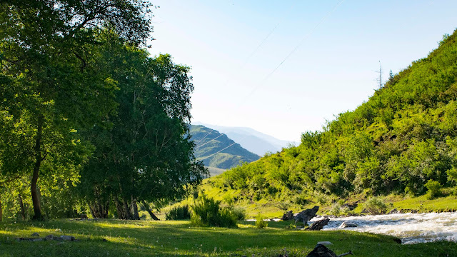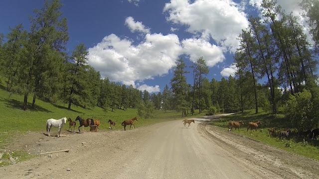 Постепенно дорога меняется и асфальт остаётся в зеркале заднего вида. Вновь я увижу его только спустя 200 километров. А сейчас пора окунуться в сказочный мир где горная речка как буд-то наперегонки с тобой несётся вниз по ущелью, бабочки тысячами облепили лужи и ждут когда кто-то или что-то всколыхнёт их и они пустятся в пляс по ветру, любопытные суслики повыскакивали из своих нор чтобы поприветствовать тебя, кони пасутся сами по себе вдали от сёл и людей, а коровы словно настоящие монахи постигли великую тайну бытия и уже ничего не боятся, а живут лишь настоящим моментом и наслаждаются им.
