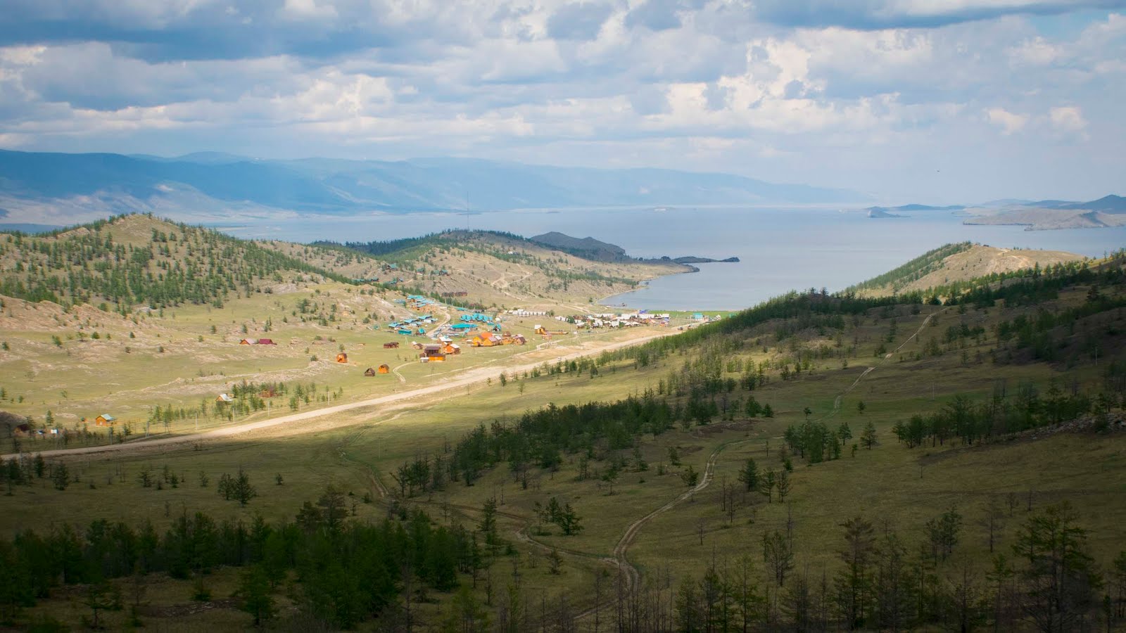 На Ольхоне мы первым делом обедаем тут же у причала в кафе. Дороги на острове только грунтовые.