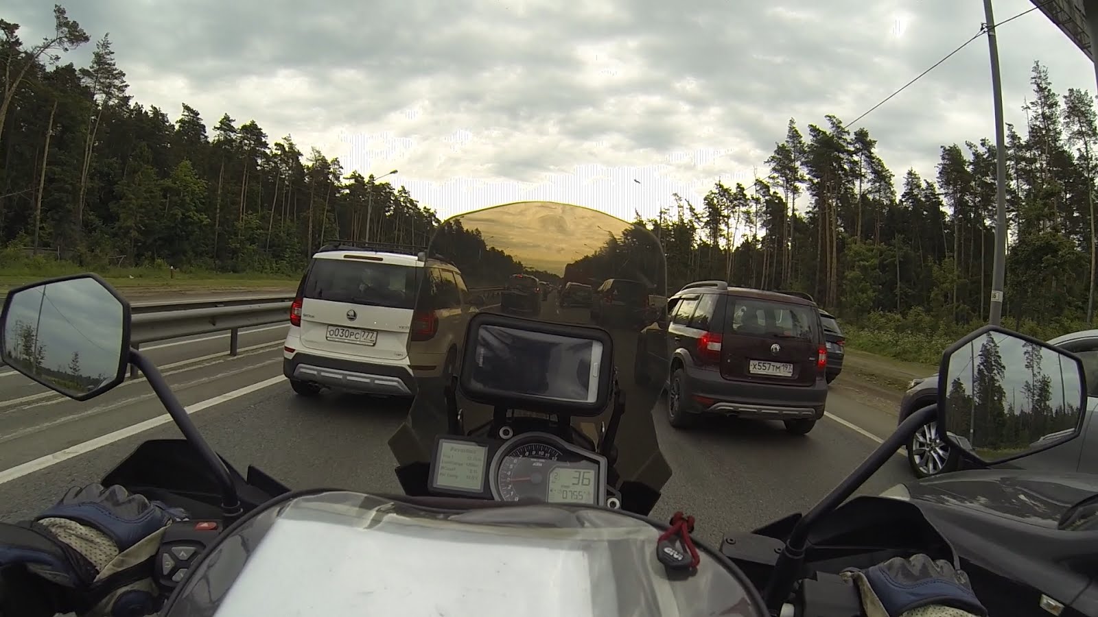 Итак 10 июня 2018 года в 9 утра на Москву с запада медленно надвигалась серая туча, несущая в себе тонны воды, как бы подгоняя меня поскорей сваливать из мрачного города. Ничего не забыть удалось лишь благодаря заранее составленному списку. Мотоцикл обслужен, поменяно масло, цепь, звёзды, задняя резина, поставлена защита картера, кронштейн навигатора, изготовлено высокое ветровое стекло, закреплены по бокам канистры для воды и бензина. Ну что же, с Богом!
