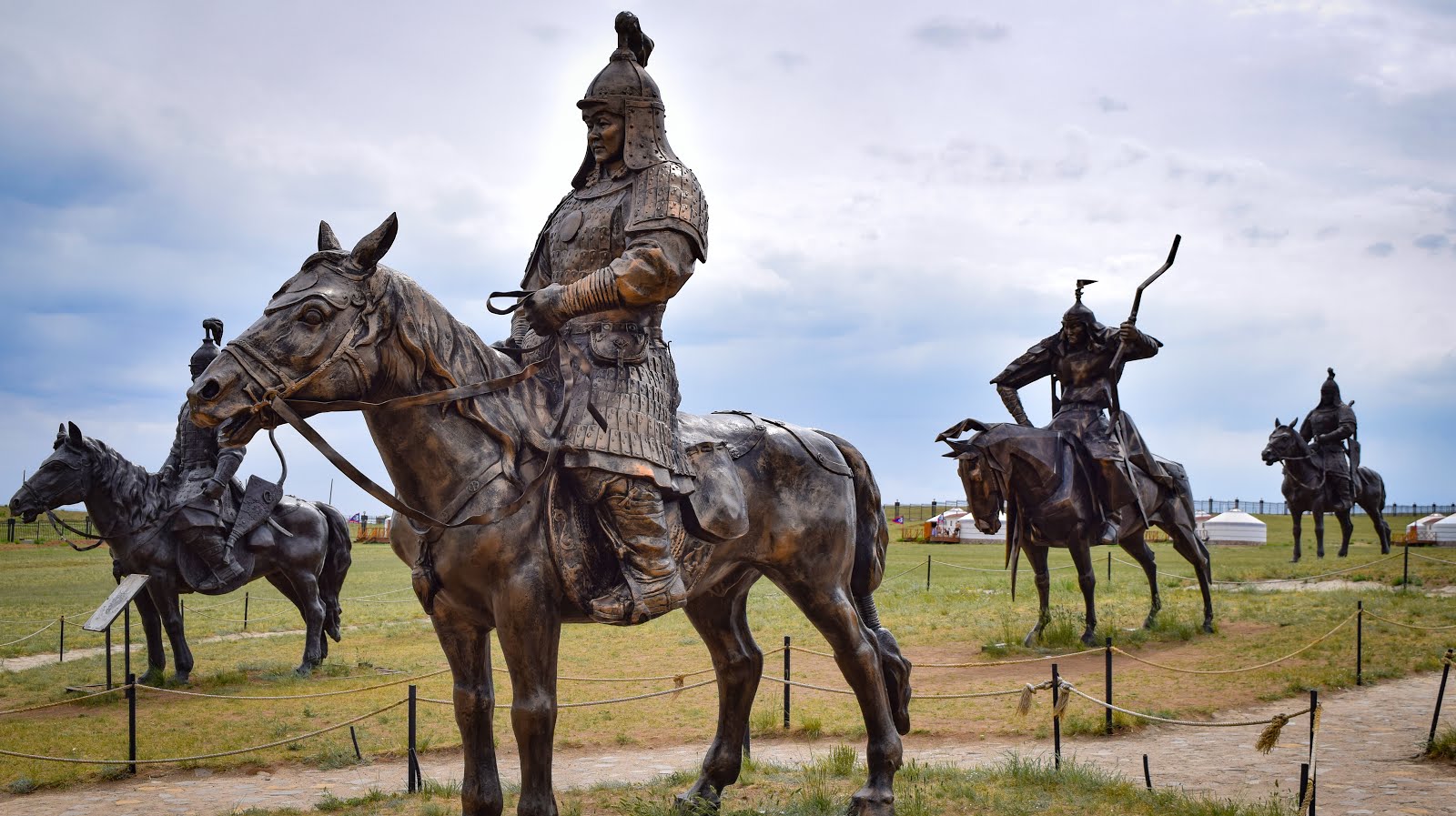 У подножия одиннадцать медных статуй богатуров охраняющих юрту с сувенирами.