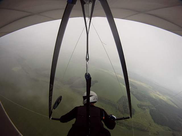 Андрюха на затяжке прошил насквозь облака и увидел солнце, я решил повторить подвиг и установил себе его камеру, однако впервые в жизни умудрился перецепиться над спидбаром и поэтому затянулся лишь под облако. С облаков ещё свисали рваные космы, нижняя кромка разнилась по высоте и после отцепки я почесал к ближайшей из них. Приблизившись я ощутил динамику их движения, они довольно быстро поднимались вверх и хаотично кружились. Пролетая рядом я осознал что не смогу двигаться вместе с ними, моя скорость на много выше, но могу обкручивать их стараясь продержаться внутри как можно дольше, ведь там раздавался этот волшебный писк вариометра. Здесь вблизи такого ориентира я начал понимать как вытягивается моя спираль, как сваливается крыло при отдаче ручки и как чётко оно описывает окружность когда летит на скорости чуть выше балансирной. Видео этого полёта постараюсь выложить как только ужму его до приемлемого размера. Я мало экспериментировал с полиспастом в спиралях, но хорошо ощутил его преимущество на переходе. Я слетал в такие дали куда раньше бы и не смел задуматься, снижение при этом не уменьшилось, но скорость. была в районе 60к/ч, а на зажатой ручке против ветра доходила до 111 по GPS.