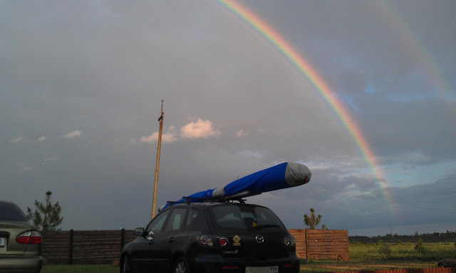 Остановка у дорожного кафе, двойная радуга.Затем приехал Толя. И тут уже всё внимание приковал к себе его T2C. Мне понравилась технора а Андрюха, облетавший его отметил очень маленький радиус спирали. Вобщем попробуем списать это на его площадь 12.4 .