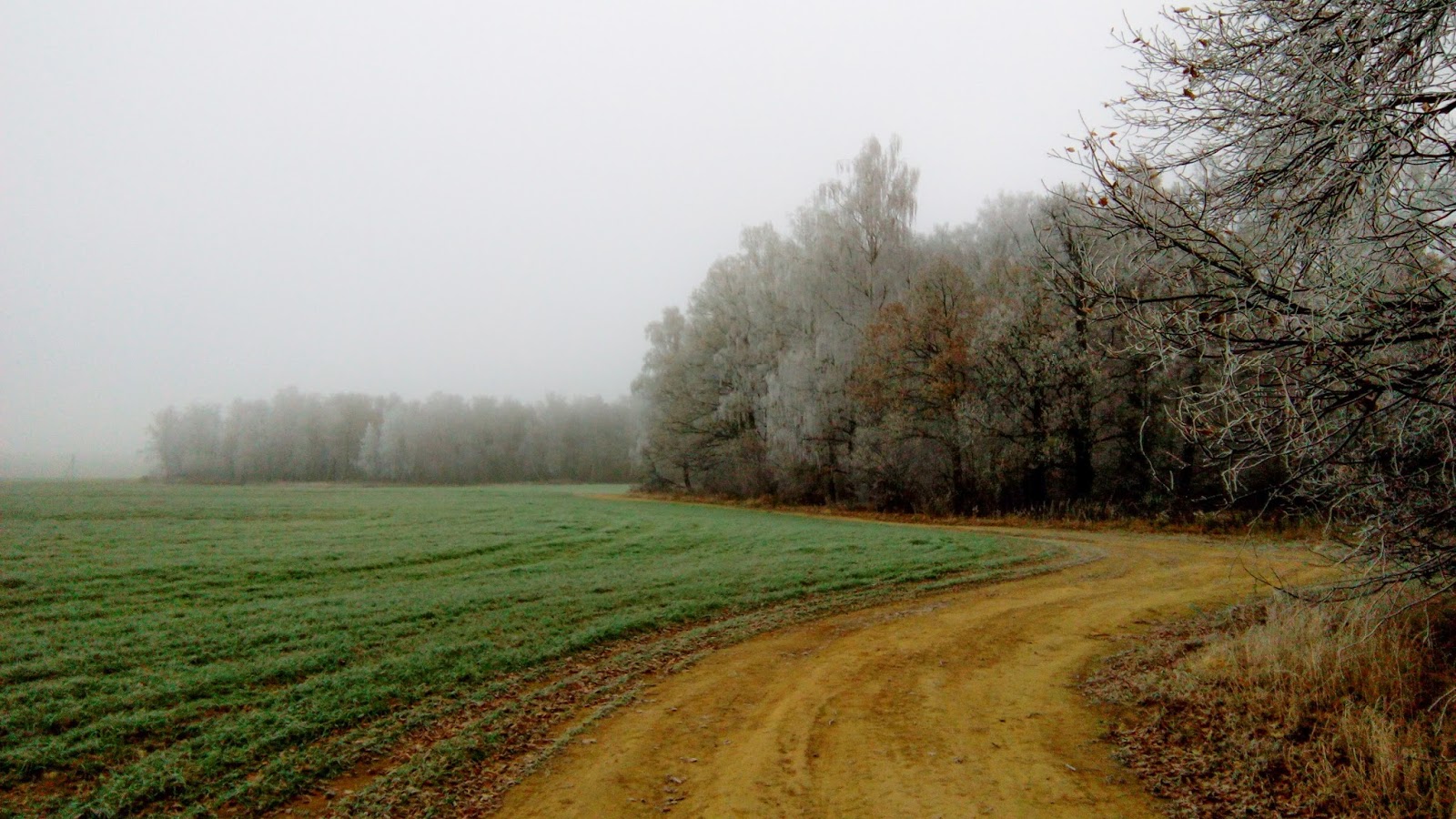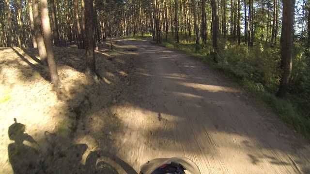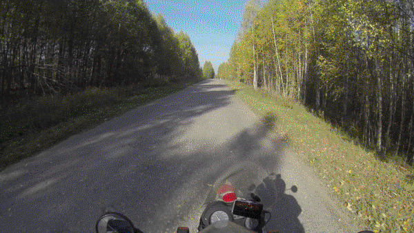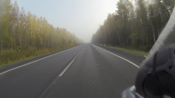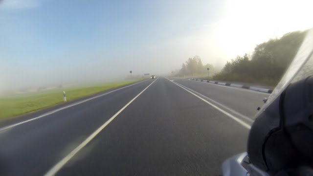 Утро было с намёком на солнце сквозь густой туман. Пока завтракал мимо прошли и вернулись грибники, помогли мне развернуть мотоцикл и пожелали удачи. Двигаю в путь, и потихоньку обалдеваю от красоты. Останавливаюсь смазать цепь, вешаю камеру на шлем и делаю новые кадры.
