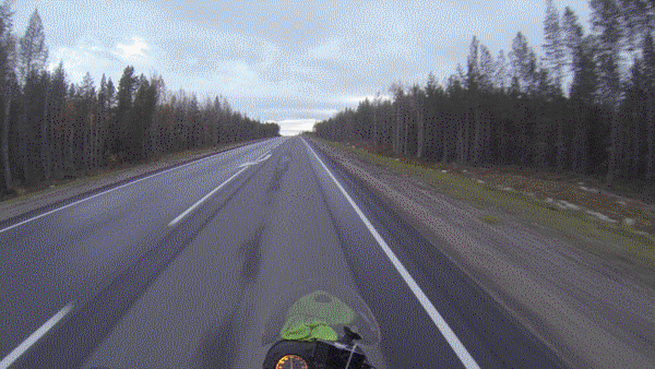 Ночь, дождь, холод, жесть. Еду не спеша иначе замерзаю быстрее. Не знаю сколько времени я ехал, но казалось бесконечно долго. АЗС, а значит будет тёплый чай, сигарета и снова в путь. На градуснике разглядываю +7, по прогнозу ниже опуститься не должно. К 3-м часам ночи доезжаю до заправки у Лоухи. Ужасно уставший, холодный, голодный и мокрый заказываю борщ, второе и чай. Пока ел борщ кассирша принесла грязнущее ведро, думал полы будет мыть, а нет, она вылила его в бойлер для чая. Достал планшет прикинул расстояние, до полярного круга оставалось около 60км, а до рассвета ещё 3 часа. Решаю потупить здесь пока не останется хотя бы час. Кассирши из кафе и заправки так же кемарят. Посетителей почти нет, но уснуть сидя за столом не удаётся.